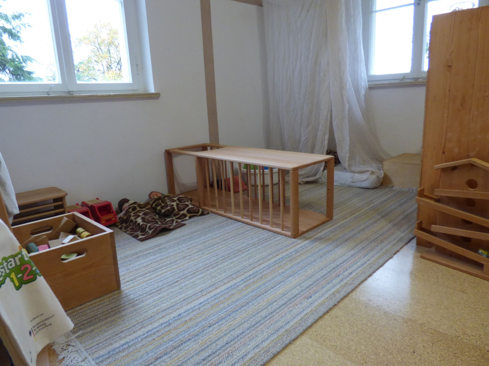 Die Kinder spielen in einem für sie eingerichteten Raum und im Garten