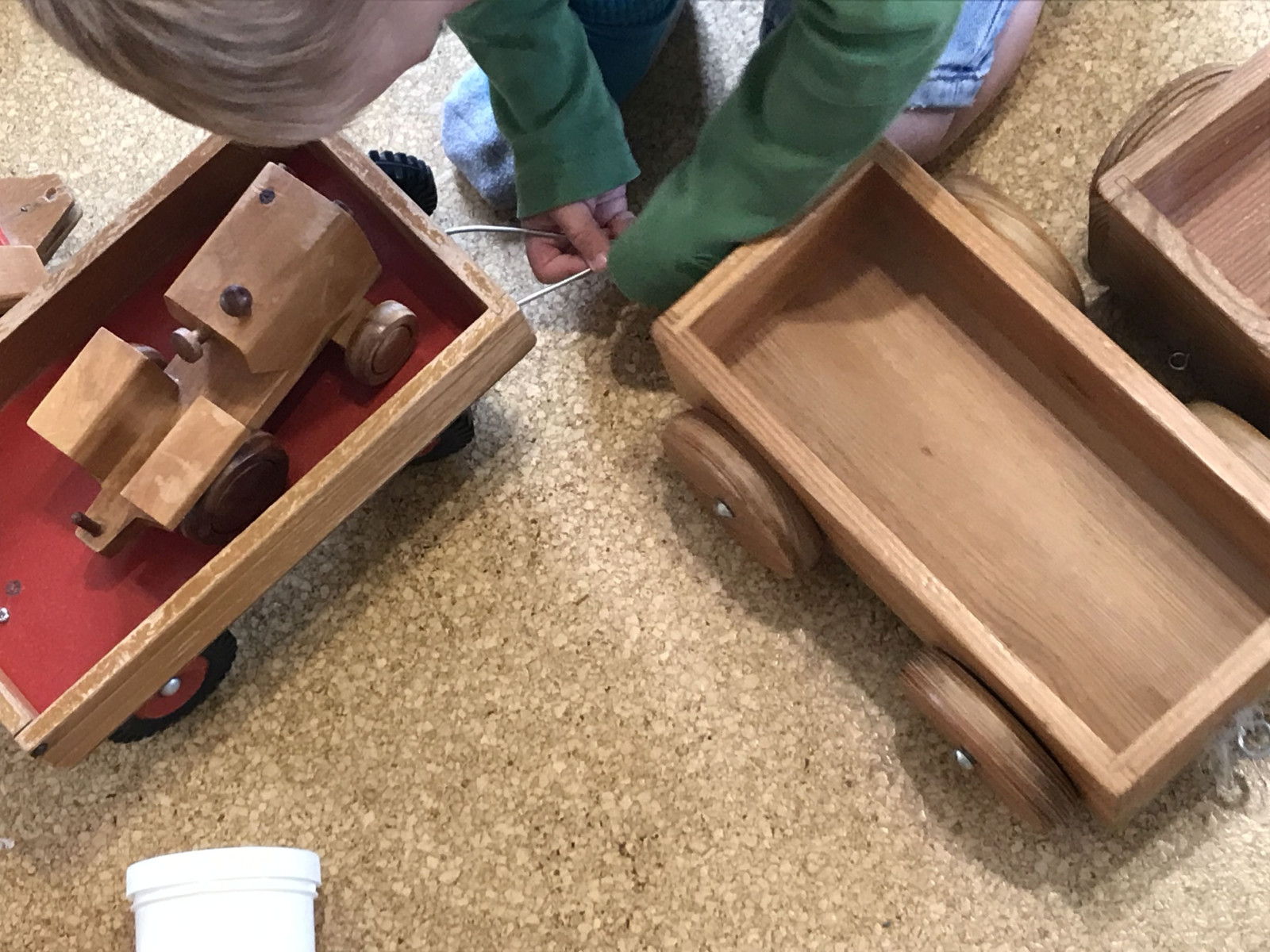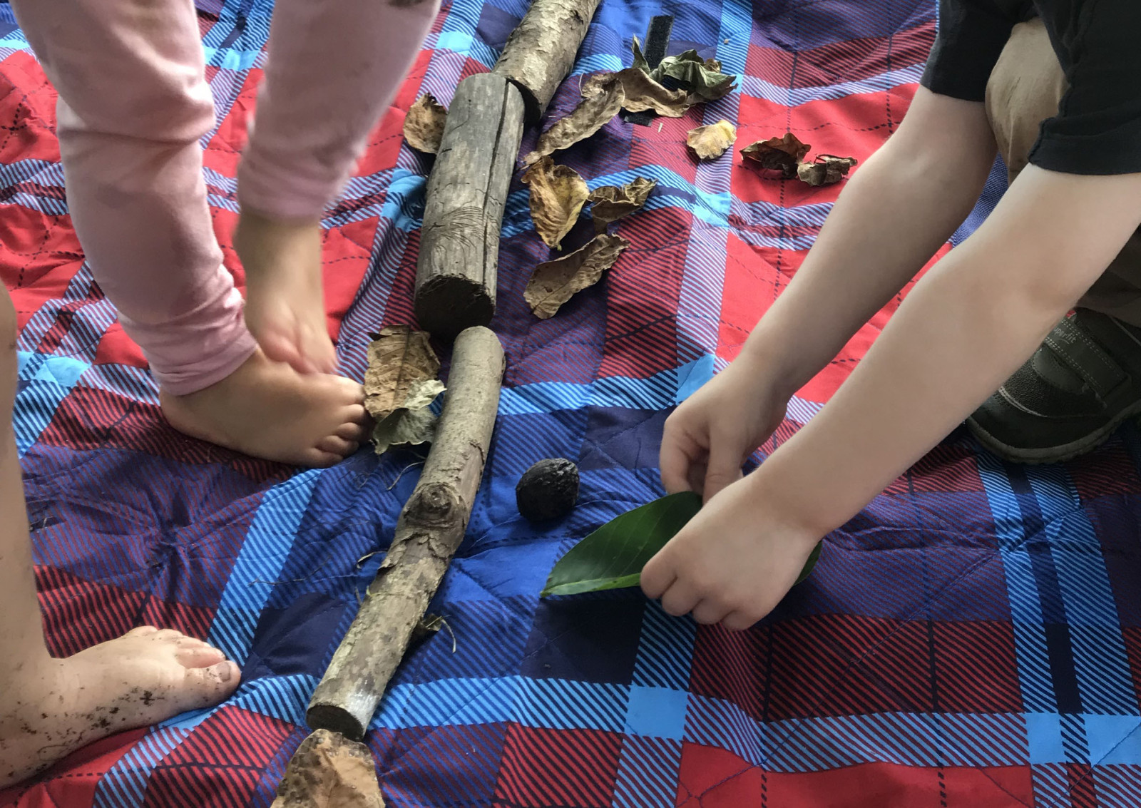 Das Spielmaterial besteht überwiegend aus Alltagsmaterial und Naturmaterialien.